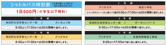 - 授乳室:有田駅観光案内所横、JAさが有田支所